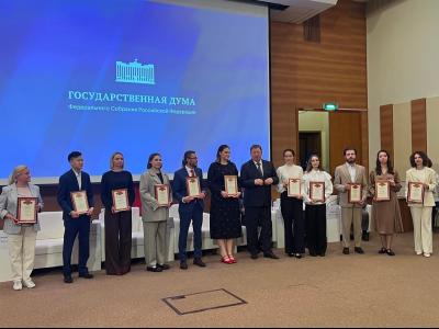 В завершение парламентских слушаний Председатель Комитета вручил Почетные грамоты и Благодарности Комитета по аграрным вопросам за профессионализм и личный вклад в развитие научного потенциала агропромышленного комплекса сотрудникам Федерального научного центра пищевых систем им. В.М.Горбатова, РАН и Всероссийского научно-исследовательского института молочной промышленности.