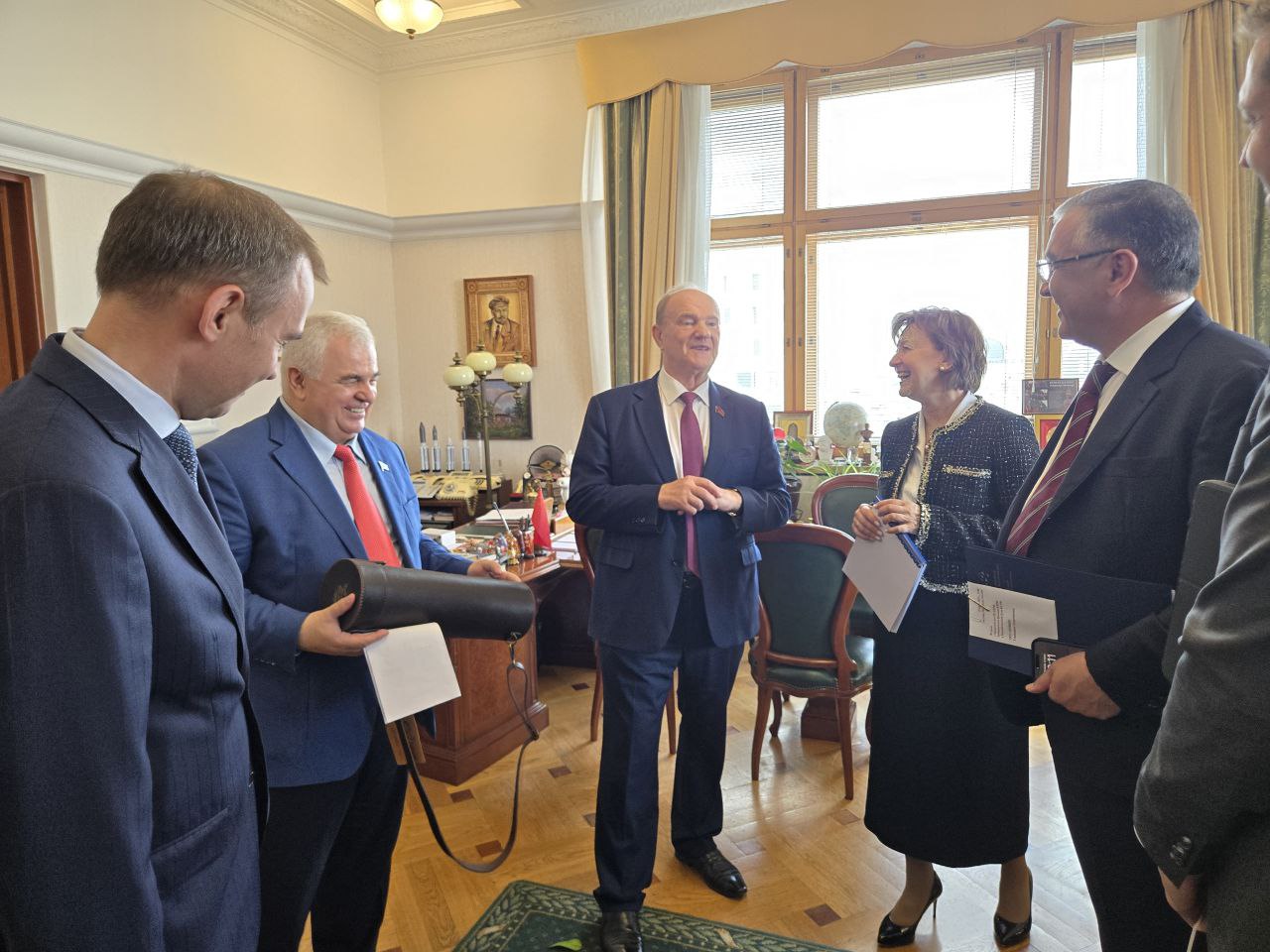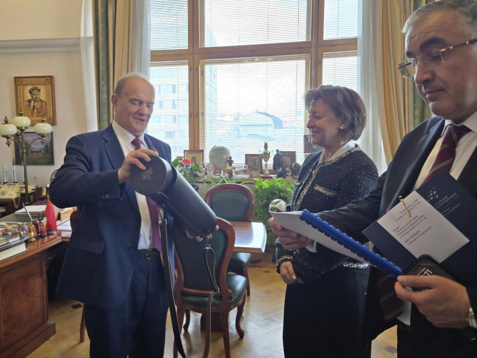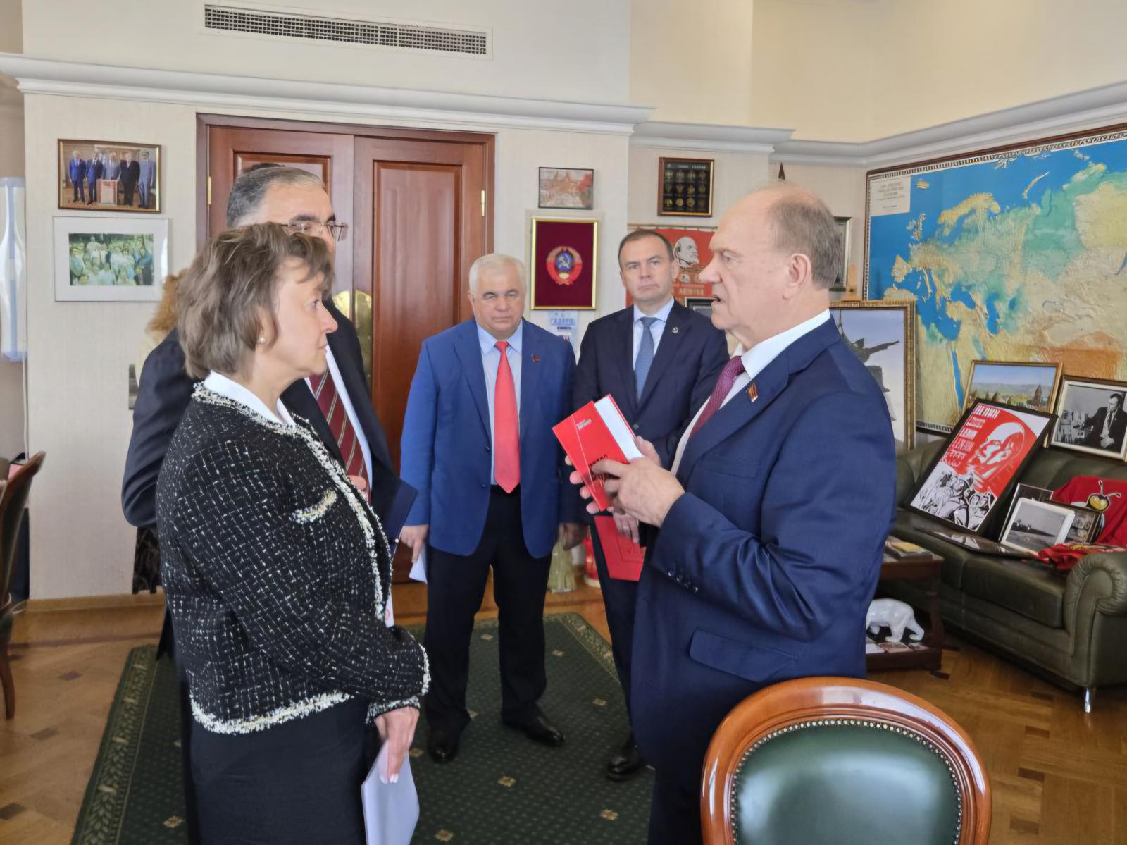 На встрече присутствовали: Первый заместитель Председателя ЦК КПРФ, Первый заместитель председателя комитета Государственной Думы по безопасности и противодействию коррупции Юрий Вячеславович Афонин; секретарь ЦК КПРФ, Первый заместитель Председателя Центрального Совета СКП-КПСС, Первый заместитель председателя Комитета ГД по делам СНГ, евразийской интеграции и связям с соотечественниками Казбек Куцукович Тайсаев.