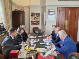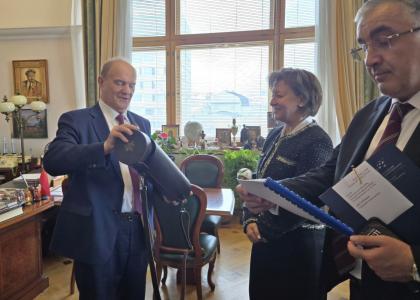 В этот же день состоялась встреча Заместителя Председателя ЦК КПРФ, Председателя Комитета Государственной Думы по делам СНГ, Евразийской интеграции и связям с соотечественниками Леонида Ивановича Калашникова с генеральным директором АО «Российский экспортный центр» Никишиной Вероникой Олеговной.