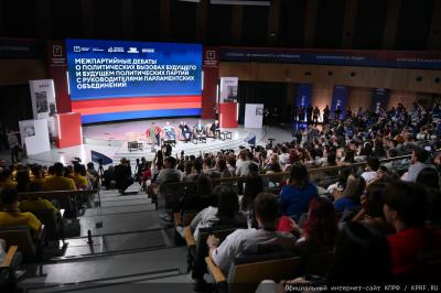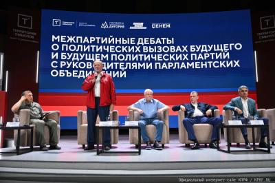 В понедельник, 28 июля, в рамках участия в работе Всероссийского образовательного форума "Территория смыслов" Председатель ЦК КПРФ Г.А. Зюганов выступил на межпартийных дебатах о политических вызовах будущего и будущем политических партий .