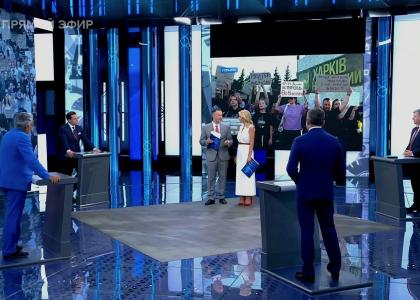 Участники программы «Время покажет» предположили, что за протестами стоят западные кураторы. Дмитрий Новиков назвал очень удачными оценки нынешних протестов в Киеве как «картонного майдана». Это верно не только потому, что многие плакаты в руках протестующих нарисованы на картоне, но и по сути своей, пояснил он: «На Украине сегодня всё картонное – майдан, политика, демократия, которой похваляется Зеленский».