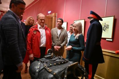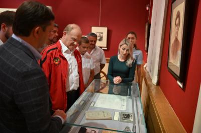 Затем Геннадий Андреевич посетил усадебный ансамбль музея-заповедника. Здесь он побывал в храме Спаса Преображения Господня, осмотрел главное здание и парк усадьбы, выставку под открытым небом, посвященную судьбе Спасского-Лутовинова в годы Великой Отечественной войны.