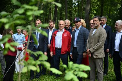 Затем Г.А. Зюганов осмотрел молодой дубок, выросший из корней старинного дуба, посаженного И.С. Тургеневым.