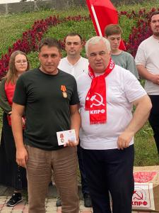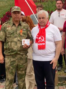 В ходе мероприятия также выступили первый секретарь Кабардино-Балкарского рескома КПРФ Б.С. Паштов, секретарь Северо-Осетинского рескома КПРФ Ч.А. Дудати, первой секретарь Карачаево-Черкесского рескома КПРФ К.К. Бытдаев. Далее состоялось награждение принимавших участие в мероприятии бойцов СВО памятными медалями ЦК КПРФ «80 лет Победы».