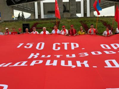 После торжественного митинга колонна автомобилей, украшенные копиями Знамени Победы, флагами СССР, КПРФ и ЛКСМ, проследовала по центральным улицам города под лозунгами: «За Родину! За социализм! За нашу Победу!».