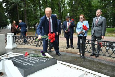Затем коммунисты проследовали в парк, прилегающий к территории музея, где возложили цветы к могиле К. Э. Циолковского.