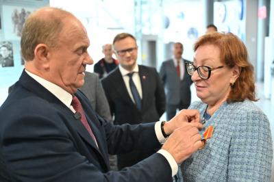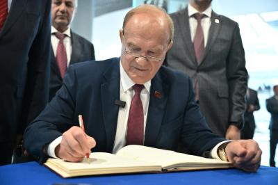 В завершение экскурсии Г. А. Зюганов оставил комментарий в книге отзывов, а также вручил памятные подарки сотрудникам.