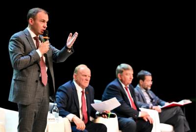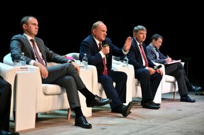 С приветственным словом выступил Г.А. Зюганов. Он напомнил об угрозах русскому миру, исходящих от Запада, развязавшего войну на Украине.