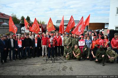 На митинге выступил герой Донбасса, депутат Государственной Думы Казбек Тайсаев: «Я только прилетел из Сибири. Они отправили уже пятый большой гуманитарный конвой. Сейчас они готовятся к выборам. У них в списках с областной Совет и Советы всех уровней 10 участников специальной военной операции. Это ребята, которые, получив ранение, прошли реабилитацию, получив боевые награды, сейчас в наших строях и идут на выборы. Но это только те, которые награждены высокими боевыми наградами. Я одного из них спросил: «Ты не коммунист?» Он говорит: «Нет, я не коммунист, я беспартийный». Я спрашиваю: «Почему идешь по нашим спискам? Иди по «Единой России», там точно станешь депутатом». Он говорит: «Я не пойду, они ничего не решают. И когда я воевал, рядом со мной была только Компартия». И словами Геннадия Андреевича он сказал: «Передайте Грудинину, мы хотим сделать Новосибирск таким же красивым, уютным, как он сделал в совхозе им. Ленина». Так что Павлу Николаевичу тоже от сибиряков привет. Уверен, что Победа будет за нами и враг будет разбит!
