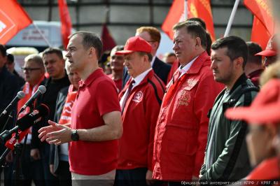 На митинге также выступили первый секретарь Владимирского обкома КПРФ Антон Сидорко, первый секретарь Донецкого республиканского отделения КПРФ Борис Литвинов, первый секретарь Херсонского областного комитета КПРФ Рамиль Замалетдинов, сенатор РФ Айрат Гибатдинов, а также представители от рязанских десантников, коммунистов Северной Осетии и пионеров из Подмосковья.