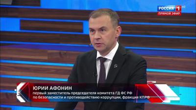 Первый заместитель Председателя ЦК КПРФ Ю.В. Афонин выступил в программе «60 минут» на телеканале «Россия-1».