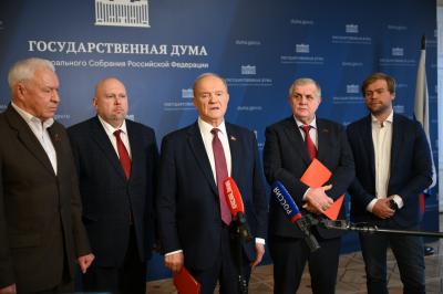 Перед началом круглого стола фракции КПРФ в Госдуме “От эпохи роботов - к эре человека. Искусственный интеллект и социализм” состоялся пресс-подход. К представителям СМИ обратился Председатель ЦК КПРФ Г. А. Зюганов:
