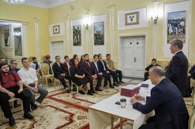 С ответным словом выступили выпускники Центра политической учёбы — Владислав Евгеньев (Самарская область), Александр Дмитриев (Санкт-Петербург), Инна Черногорова (Ростовская область) и Матвей Зотов (Москва). Они поделились своими впечатлениями от обучения, отметив насыщенность программы, её практическую направленность и актуальность изучаемых тем, включая современные цифровые технологии и работу с интернет-аудиторией.