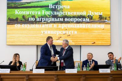 Встреча с депутатами Государственной Думы-членами Комитета по аграрным вопросам, представителями Минсельхоза России и Минобрнауки России стала важным событием для университета, подчеркнув роль Академии имени Тимирязева как ведущего центра аграрного образования и науки, а также укрепив взаимодействие между законодательной властью и академическим сообществом в решении стратегических задач АПК.