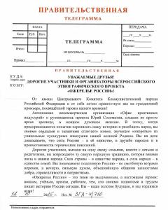 «Вы своими сердцами и талантами сплетаете живое „ожерелье“ из уникальных культурных жемчужин нашей великой Родины. Сила России — в её единстве, в дружбе народов и в преемственности героических поколений», — отметил лидер КПРФ.
