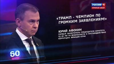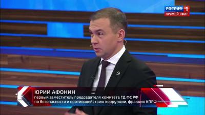 Первый заместитель Председателя ЦК КПРФ Ю. В. Афонин принял участие в программе «60 минут» на телеканале «Россия-1». В студии обсуждались главные темы международной повестки.