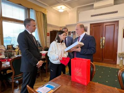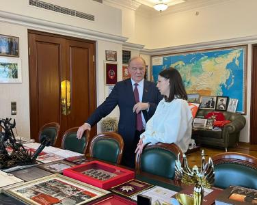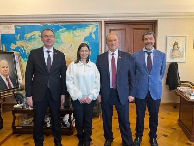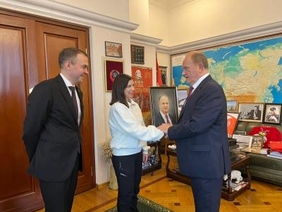 Председатель ЦК КПРФ Г.А. Зюганов встретился в Государственной Думе с военкором Первого канала И.Ю. Куксенковой. Во встрече также приняли участие первый заместитель Председателя ЦК КПРФ Ю.В. Афонин, являющийся наставником Ирины в проекте «Лидеры России. Политика», и секретарь ЦК КПРФ А.А. Ющенко.