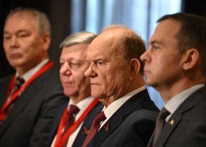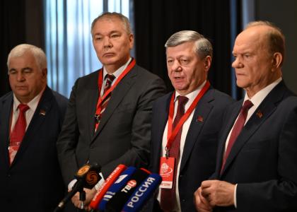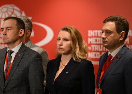 В четверг, 6 ноября, в ходе работы Международного медиафорума "Правда против фашизма" состоялся пресс-подход руководства КПРФ. К представителям СМИ обратились Председатель ЦК КПРФ Г. А. Зюганов, заместители Председателя ЦК КПРФ Д. Г. Новиков и Л. И. Калашников.