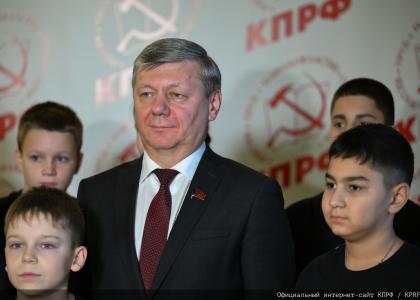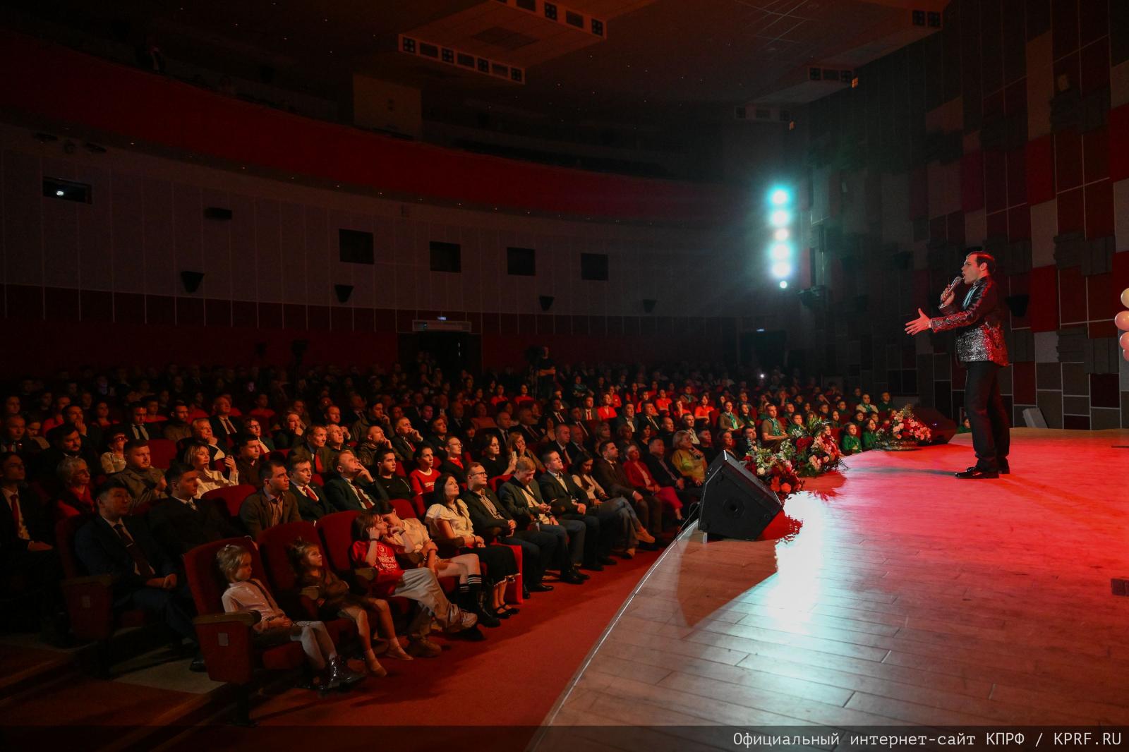 Концерт открыло приветствие почетных гостей. Со сцены к собравшимся обратился лидер коммунистов. Поприветствовав участников концерта, он сказал: