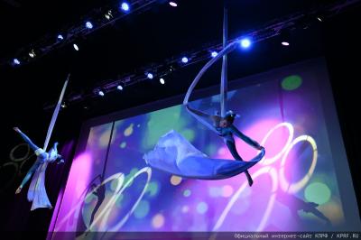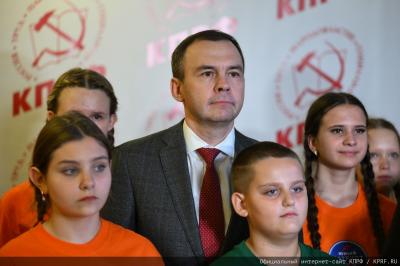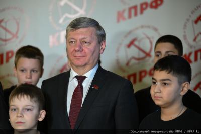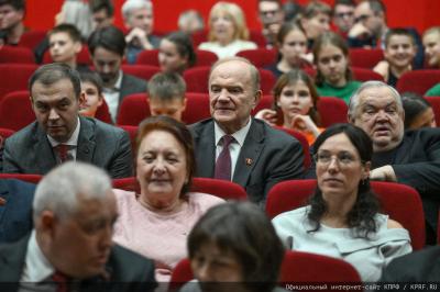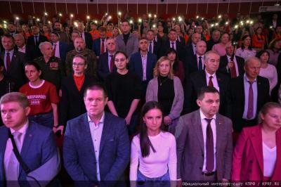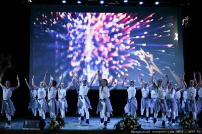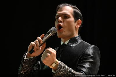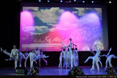 Концерт открыло приветствие почетных гостей. Со сцены к собравшимся обратился лидер коммунистов. Поприветствовав участников концерта, он сказал: