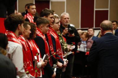 После этого Председатель ЦК КПРФ Г.А. Зюганов вручил партийные билеты новому пополнению КПРФ. Участники Пленума поздравили вступивших в партию продолжительными аплодисментами.
