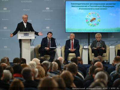 17 ноября фракция КПРФ в Госдуме провела в Москве в Доме Союзов (Октябрьском зале) круглый стол на тему: «Законодательное регулирование развития биотехнологий в Российской Федерации. Агроэкологический аспект». В работе круглого стола, проводившегося в формате больших слушаний, приняли участие более пятисот человек. Открыл это мероприятие Председатель ЦК КПРФ, Руководитель фракции КПРФ в Госдуме Г.А. Зюганов.