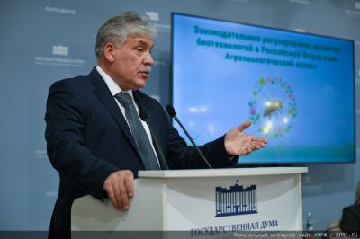 Ведущим круглого стола был заместитель Председателя Комитета Госдумы по экологии, природным ресурсам и охране окружающей среды О.А. Лебедев. Он отметил, что символом проводимых слушаний является Пчела, потому что она своеобразный индикатор хорошей экологии. «Гибель пчел свидетельствует прежде всего об опасности здоровью и жизни человека. Поэтому ради здоровья человека, экологической и продовольственной безопасности сегодня особенно важно всемерно развивать биотехнологии в нашей стране», - подчеркнул он.