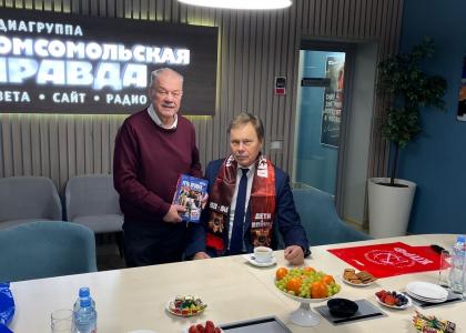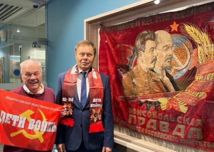 - Давайте вместе с вами будем как-то продвигать, смотреть. И еще один закон, который уже много лет компартия во главе с товарищем Зюгановым пробивает, это закон, посвященный детям войны. И я уже показал этот флаг. На видео это видно сейчас. Николай Васильевич пришел с таким шарфом патриотическим. Скажите, как сейчас с этим законодательством, одним из инициаторов которого был Иосиф Кобзон, депутат Кобзон? И вы вместе с ним продвигали эту тему в Госдуме. Как сейчас? И почему я с флагом, а вы с шарфом в эфире радио «Комсомольская правда», в «Партийной среде»?