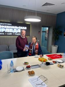 В эфире радио «Комсомольская правда» был Генеральный секретарь родной Ленинской Коммунистической партии товарищ Геннадий Андреевич Зюганов. А теперь я могу объяснить, почему мой сегодняшний гость, секретарь ЦК КПРФ, депутат Госдумы Николай Васильевич Арефьев. Он еще и капитан второго ранга. Сейчас Николай Васильевич сам это объяснит, потому что сегодня отличный совершенно праздник. А потом, когда мы отметим праздник, я потом еще… У нас же видео идет, и потом объясню, почему я пришел не так, а вот так. Правильно, да?