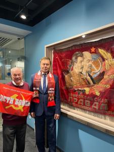 - Шарфики, и флаги, и знамена – это наша атрибутика, с которой мы выходим на свои акции, на празднования, на праздники, как и любая общественная организация. У нас своя, собственно, атрибутика есть. У нас есть почетные грамоты. У нас медаль Центральный комитет выпустил «Дети войны».
