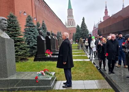 После возложения цветов делегация посетила Некрополь у Кремлёвской стены, где похоронены выдающиеся деятели советского государства.