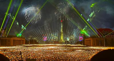 За три первых дня визита в Пхеньян делегация КПРФ посетила три главных мероприятия. Во время празднования 80-летия ТПК на Стадионе имени Первого мая мы стали свидетелями грандиозного торжества с участием больших масс артистов и спортсменов. В последующие дни мы присутствовали на вечернем параде войск и массовой демонстрации на площади имени Ким Ир Сена в центре Пхеньяна. Самым ярким элементом третьего из этих событий стало факельное представление корейской молодёжи.