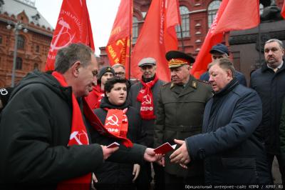 В пятницу, 5 декабря, в ознаменование 84-й годовщины начала контрнаступления советских войск под Москвой, коммунисты, комсомольцы, представители лево-патриотических организаций возложили венки и цветы к Могиле неизвестного солдата и к памятнику Г.К. Жукову. Торжественное шествие возглавил заместитель Председателя ЦК КПРФ, руководитель Общероссийского штаба протестных действий академик РАН В.И. Кашин.