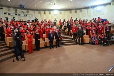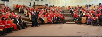 Малый зал, где проходила встреча, оказался полностью заполнен. В этот день он окрасился в красные тона – подавляющее большинство активисток движения были в нарядных красных платьях и костюмах. Абсолютно всех украшал красный шарфик с символикой «ВЖС». При входе каждой участнице был вручён новый выпуск журнала «Надежда РУ».