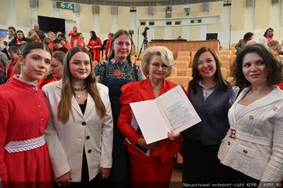 Активистки, которые уверенно и ярко ведут свою работу в региональных организациях, были награждены Благодарственным письмом депутата Госдумы РФ, председателя Комитета по защите семьи, вопросам отцовства, материнства и детства Нины Останиной.