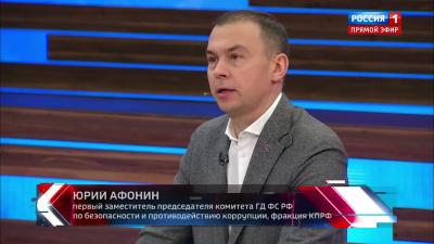 Первый заместитель Председателя ЦК КПРФ Ю. В. Афонин выступил в программе «60 минут» на телеканале «Россия-1».
