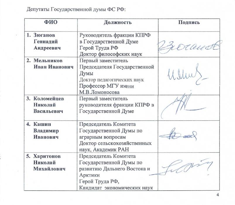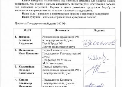 Обращение депутатов фракции КПРФ в Государственной Думе