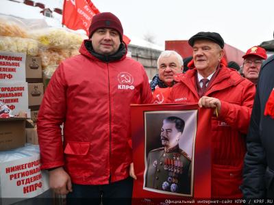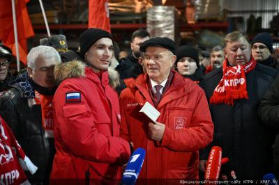 Мы этот конвой приурочили ко Дню рождения и возрождения Компартии Российской Федерации. Ровно 33 года назад на Съезде мы восстановили право трудового народа иметь свою организацию, которая верой и правдой служит идеалам дружбы, справедливости и мира на этой планете. Мы благодарим всех без исключения, кто помогал в эти годы. Нам не стыдно любому человеку смотреть в глаза, потому что именно наша команда трижды спасла Россию в 90-е годы от гражданской войны. Именно мы объявили импичмент Ельцину и выдавили его жуткую вороватую команду из управления и Правительства. Именно мы создавали Правительство Примакова, Маслюкова и Геращенко, которое оттащило страну от края пропасти. Именно мы все сделали для того, чтобы сохранить военно-промышленный комплекс, 10 атомных городов, 15 авиационных предприятий и спасти нашу Державу от того нашествия, которое случилось. Без такого военно-промышленного комплекса мы бы сегодня не справились, когда под флагом бандеровщины объединилось 51 государство, во главе с гитлеровской Германией, которая продолжает традиции не лучших их правителей, а той же сволочи и мерзавцев, которые развязали Вторую мировую войну.
