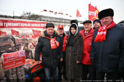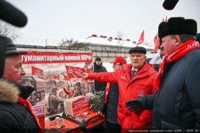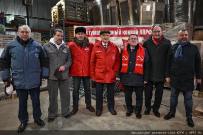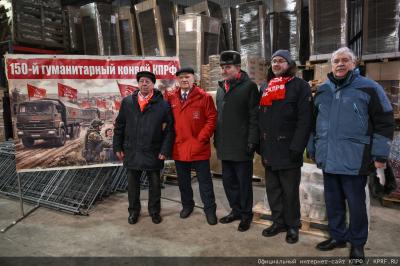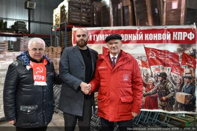 В формировании гуманитарного груза приняли активное участие Председатель ЦК КПРФ Геннадий Зюганов, заместитель Председателя ЦК КПРФ Владимир Кашин, первый заместитель Председателя ЦК КПРФ Юрий Афонин, члены Президиума ЦК Николай Васильев и Виктор Царихин и депутаты Госдумы от КПРФ Александр Ющенко, Виктор Соболев, Казбек Тайсаев, Артем Прокофьев, а также сенатор Совета Федерации Айрат Гибатдинов. От Московской областной Думы: заместитель Председателя Мособлдумы – руководитель фракции КПРФ, секретарь МК КПРФ Александр Наумов и депутат от КПРФ Татьяна Никитас. Большой вклад внесли в формирование гуманитарного конвоя коммунисты Подмосковья. Среди них секретари МК КПРФ - Василий Стасюк, второй секретарь МК ЛКСМ РФ, член МК КПРФ Артем Васильев, сотрудник МК КПРФ Константин Баранов, руководитель пресс-службы МК КПРФ, главред сайта МК КПРФ Евгения Наумова, руководитель аппарата фракции КПРФ в Мособлдуме Константин Елисеев, референт руководителя фракции КПРФ в Мособлдуме Александр Голуб, сотрудник выборного отдела Кирилл Имеев. Подключились активно и коммунисты Москвы (первый секретарь – Виктор Царихин), Владимира (первый секретарь - Антон Сидорко), Калуги (первый секретарь – Николай Яшкин), Нижнего Новогорода (первый секретарь - Владислав Егоров), Рязани (первый секретарь – Денис Сидоров), Твери (первый секретарь – Людмила Воробьева), Тулы (первый секретарь – Алексей Лебедев) и другие товарищи.