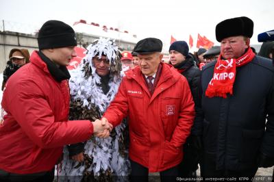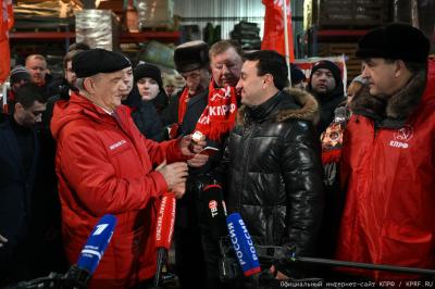 - Уважаемы товарищи! Мне хотелось бы прежде всего поблагодарить наши местные партийные организации, общественные организации в формировании этого гуманитарного конвоя. Владимир Иванович сказал, что наряду с центральной площадкой в течении января-февраля 11 наших местных отделений напрямую отправили в подразделения, над которыми они шефствуют, еще 14 конвоев, которые были сформированы по заказу наших бойцов. Поэтому работа продолжается. Мы уверены в нашей Победе, ждем ее! Хочу поздравить от лица жителей Подмосковья, от лица коммунистов всех наших героических воинов с наступающим Днем Советской Армии и Военно-Морского флота!