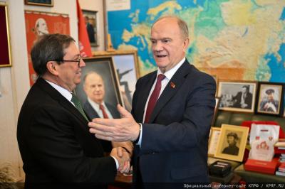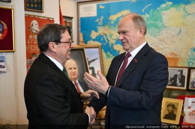В рабочем кабинете Г.А. Зюганова в Государственной Думе состоялась встреча с кубинской делегацией во главе с министром иностранных дел Бруно Родригесом Паррилья. В ней приняли участие: Председатель ЦК КПРФ Г.А. Зюганов, первый заместитель Председателя ЦК КПРФ И.И. Мельников, заместитель Председателя ЦК КПРФ Д.Г. Новиков, секретарь ЦК КПРФ А.А. Ющенко. Прежде всего, речь шла о формах поддержки Острова Свободы в условиях всё более агрессивной линии Трампа.