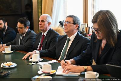 Программа пребывания Бруно Родригеса Паррилья в Москве обширна. Уже состоялась его встреча с президентом России В.В. Путиным и главой МИД России С.В. Лавровым. А в среду, 18 февраля, прошли переговоры с руководством Государственной думы, на которых российскую делегацию возглавлял первый заместитель Председателя ЦК КПРФ И.И. Мельников. На этой встрече обсуждались вопросы развития всестороннего сотрудничества России и Кубы, в том числе по межпарламентской линии, а также совместного противостояния вызовам и угрозам, с которыми сталкиваются на международной арене обе страны.