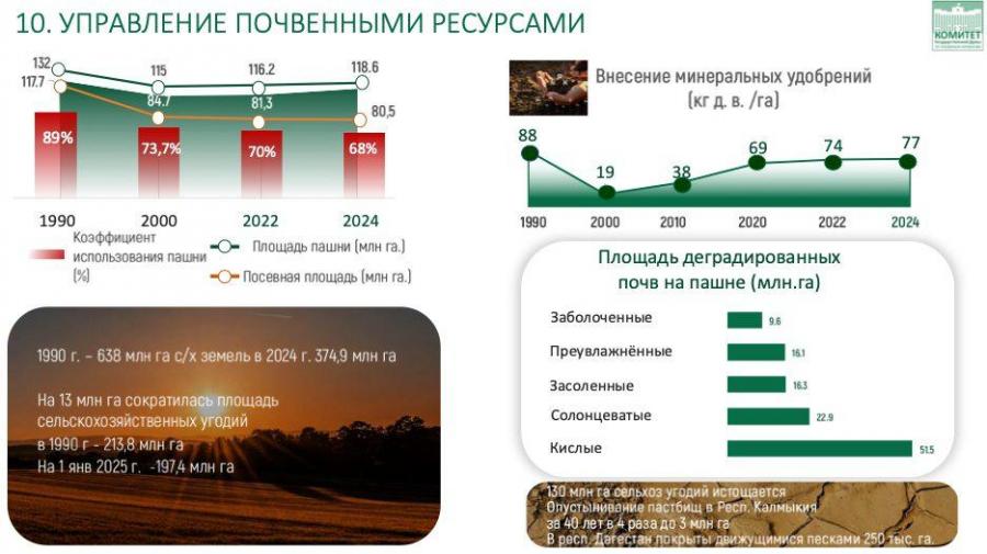 Президент видит эту угрозу и совершенно справедливо связывает состояние земель с реализацией национальных целей и обеспечением продовольственной безопасности страны. Земля — это стратегический ресурс. И от того, в каком состоянии мы её передадим следующему поколению, зависит устойчивость всей аграрной системы.