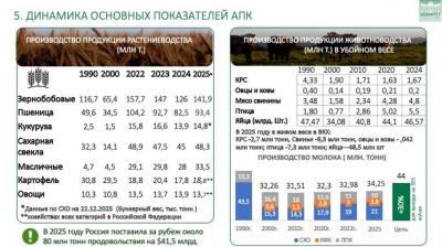 Полученные результаты впечатляют. Несмотря на серьёзные потери в ряде регионов, в том числе в Краснодарском и Ростовском краях, где недобор составил десятки миллионов тонн, нам удалось собрать 142,5 млн тонн зерна в амбарном весе. При этом по пшенице получено свыше 93 млн тонн, что позволило сохранить устойчивость внутреннего рынка и экспортные позиции. Существенно выросли зернобобовые культуры, укрепив кормовую и экспортную составляющую отрасли. Масличные также показали положительную динамику, усиливая базу для переработки и производства продукции с добавленной стоимостью. Да, по кукурузе мы видим снижение — порядка –14,8%, и это требует отдельного анализа с точки зрения погодных факторов и структуры посевов. Тем не менее в целом отрасль продемонстрировала устойчивость и системный рост.