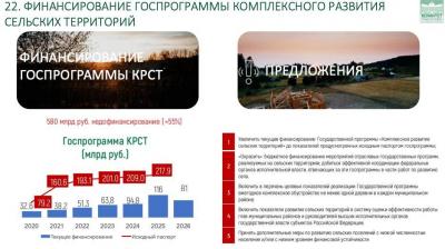 Нам крайне непросто далось утверждение государственной программы комплексного развития сельских территорий. Программа изначально имела детальные расчёты по объёмам финансирования, чёткие ориентиры и понимание необходимого масштаба преобразований.