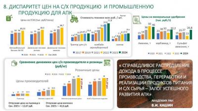 Посмотрите на текущую ситуацию. Сегодня, чтобы приобрести дизельное топливо, сельхозпроизводитель вынужден отдавать до семи тонн зерна. Разве это нормально? Совсем недавно, в историческом измерении, соотношение было иным — за одну тонну зерна можно было приобрести две тонны дизельного топлива. Сегодня всё перевернулось.