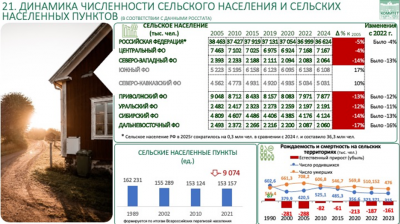 Президентом страны поставлены три ключевые задачи: сохранить сельское население, выровнять доходы сельских жителей и обеспечить сопоставимые с городскими условия жизни на селе. Однако, если мы посмотрим на статистику по федеральным округам, картина тревожная. В отдельных федеральных округах сокращение сельского населения достигает 14 процентов, на Дальнем Востоке — до 17 процентов.