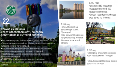 Конечно, есть и позитивные примеры, когда бизнес действительно создаёт современные сельские поселения и рабочие места. Пример руководителя «Совхоза им. Ленина» Павла Николаевича Грудинина — это пример комплексного подхода к развитию территории. Ещё примеры: в Оренбургской области реализуются проекты с созданием современных производственных комплексов и комфортного жилья для работников; в Алтайском крае строятся посёлки, где жильё предоставляется сотрудникам в аренду, а через несколько лет квартира или дом переходят в собственность. Это правильные модели развития территорий, на которые надо равняться. Люди должны быть уверены, что их деревня, хутор, станица, аул не окажутся вне государственной политики пространственного развития.