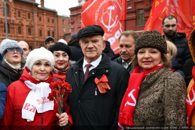 Колонну под Красными Знаменами возглавил Председатель ЦК КПРФ Г.А. Зюганов.