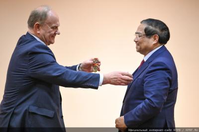 23 марта состоялась встреча Председателя ЦК КПРФ, руководителя фракции КПРФ в Госдуме Г.А. Зюганова с правительственной делегацией Вьетнама во главе с Премьер-министром СРВ Фам Минь Тинем.